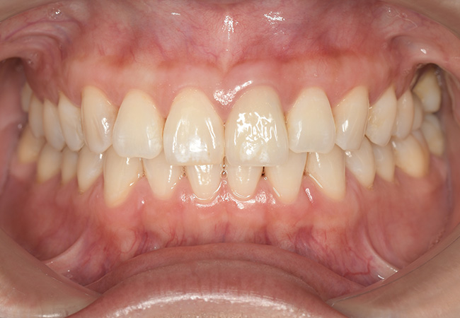 右上の6番目の歯に亀裂があり神経まで到達したため、神経を除去することになった。原因が奥歯に過剰に負担がかかる噛み合わせであることを指摘され、矯正を希望された。